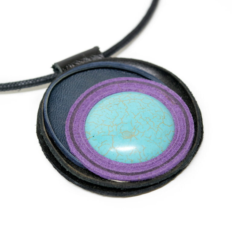 Կաշվե ձեռագործ կախազարդ փիրուզով 6.5սմ